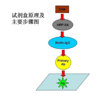 9.加二抗: 滴加用抗體稀釋液稀釋的生物素化二抗(試劑 D),37℃濕盒中孵育