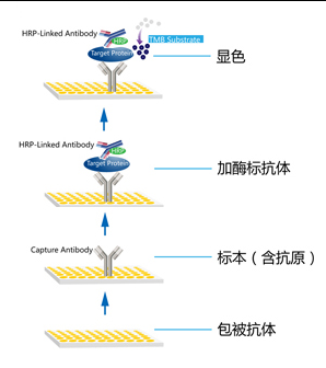本試劑盒應用雙抗體夾心法測定標本中小鼠組織因子途徑抑制物(TFPI)。用純化的小鼠組織因子途徑抑制物(TFPI)抗體包被微孔板,制成固相抗體,往包被單抗的微孔中依次加小鼠組織因子途徑抑制物(TFPI),再與 HRP 標記的小鼠組織因子途徑抑制物(TFPI)抗體結合,形成抗體抗原-酶標抗體復合物,經過徹底洗滌后加底物 TMB顯色。TMB在HRP酶的催化下轉化成藍色,并在酸的作用下轉化成最終的黃色。顏色的深淺和樣品中的小鼠組織因子途徑抑制物(TFPI)呈正相關。用酶標儀在 450nm 波長下測定吸光度(OD 值),通過標準曲線計算樣品中小鼠組織因子途徑抑制物(TFPI)濃度。